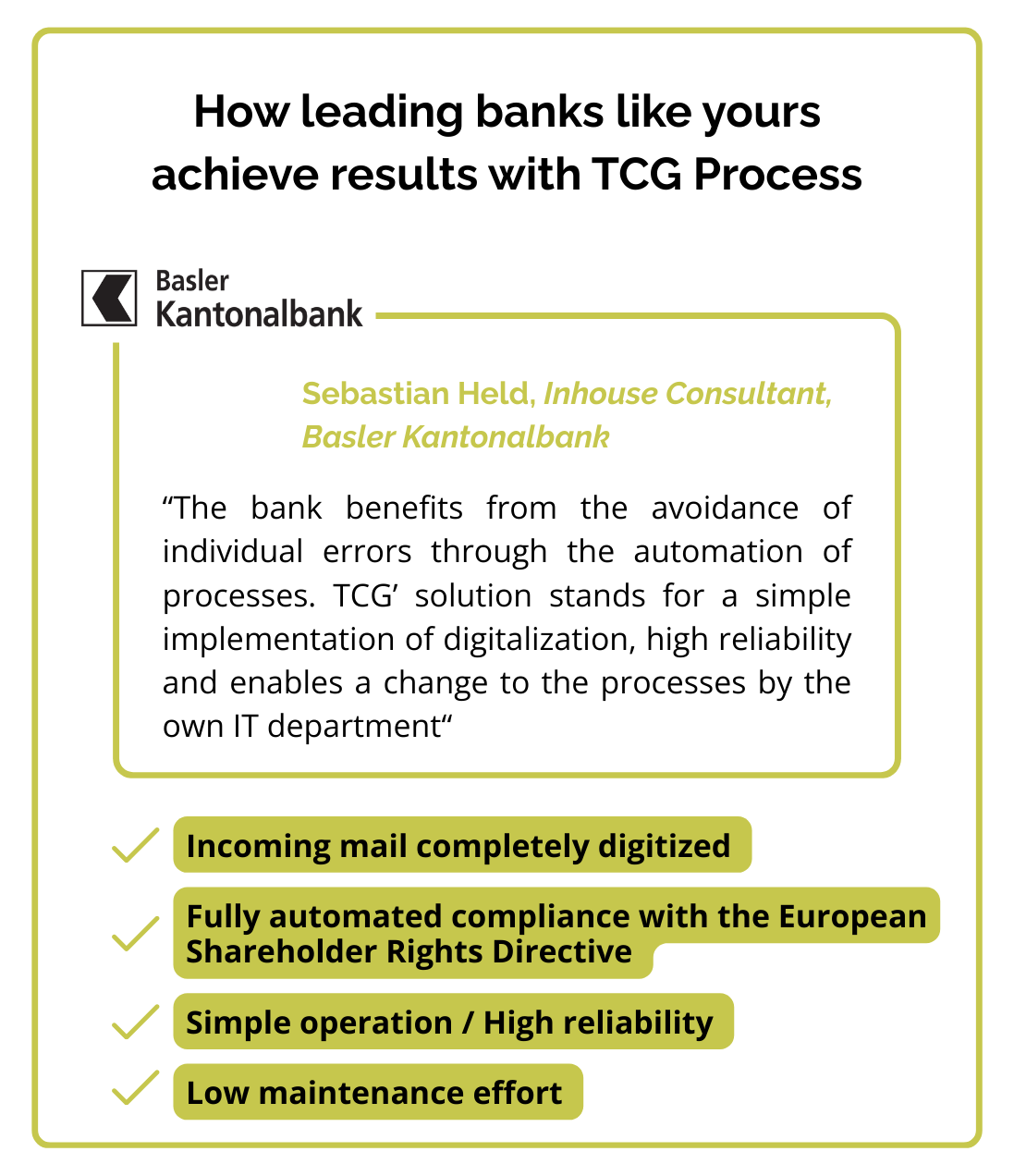 From here, many automated actions are possible, such as sending customer confirmations, opening accounts, progressing loan applications, routing tasks to the right teams, generating reports, and archiving records securely.
