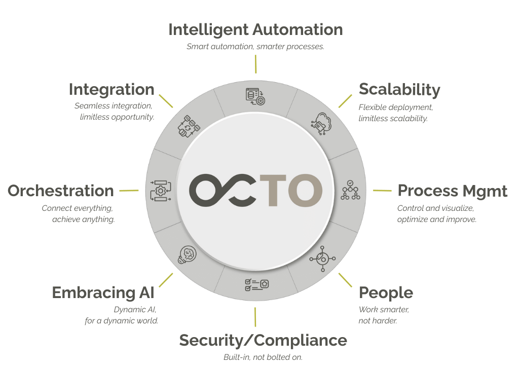 OCTO brings them together in one platform to orchestrate and automate end-to-end processes.